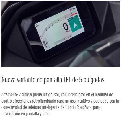 - Tecnología premium a tu alcance: Su nueva pantalla TFT de 5″ es una auténtica joya tecnológica. Gracias a su conectividad Honda RoadSync, la navegación por GPS aparece directamente en la pantalla, facilitando tus rutas urbanas. Con mandos retroiluminados, el control es sencillo y elegante.